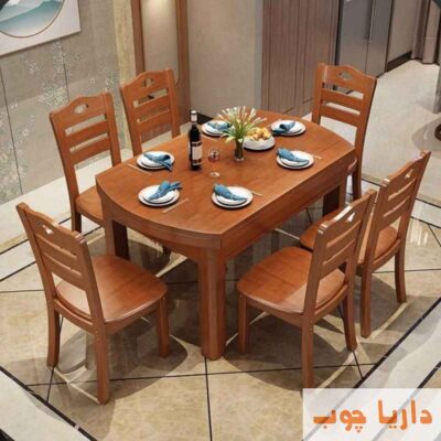 میز و صندلی ناهار خوری 6 نفره بیضی مدل صدفی