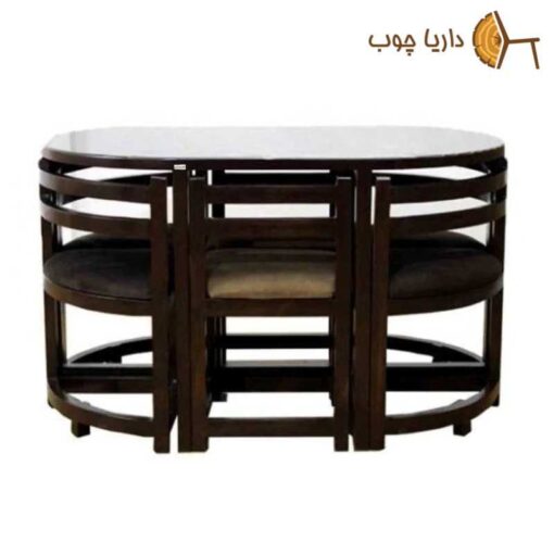 خرید میز ناهار خوری کمجا شش 6 نفره بیضی گردویی به دلیل محدودیت فضا در آپارتمان‌های فعلی بیش از پیش مورد استفاده قرار می‌گیرد که معمولا به صورتی ساخته میشوند که صندلی ها به صورت کامل به زیر میز قرار میگیرد و کاملا به میزان اندازه میز فضا اشغال میشود. این میز و صندلی ها به صورت ست شده می باشد و دارای رنگ بندی متنوع میباشد که با توجه به دکوراسیون مورد نظر خود این میز های غذاخوری را با تنوع رنگی بالا انتخاب نمایید. این میز ها از جنس های متفاوت و مناسب برای داخل و بیرون منزل می‌باشد که بیشتر برای منزل از جنس های چوبی و MDF و HDF میباشد و برای بیرون معمولا از جنس هایی که مقاومت بیشتری دارند که در برار نور آفتاب و رطوبت و بارندگی مقاوم میباشند و از بین نمیرود استفاده میشود که عمدتا از جنس های فلزی و پلیمری و همچنین از بافت های پلی اتیلنی استفاده میشود که میتواند بدون اینکه مشکلی به وجود بیاد برای مدت طولانی از آنها استفاده کرد. این میز به شما کمک می کند تا در کوچکترین مکان یک میز ناهارخوری زیبا و عالی داشته باشید البته زمانی می توانید از آن بهره ببرید که بتوانید مدل مناسبی را خریداری کنید. داریا چوب عرضه کننده انواع میز ناهار خوری کم جا در مدلهای متنوع مربع، بیضی، نیم دایره، مستطیلی و …  بصورت 2 نفره ، 4 نفره و 6 نفره میباشد و علاوه بر آن انواع دیگری از محصولات میز ناهار خوری خود را در تهران و سراسر ایران تولید و عرضه مینماید . میز غذاخوری کم جا شش 6 نفره بیضی گردویی به دسته ای از انواع میز غذاخوری گفته میشود که صندلی ها در آن دارای تکیه گاه نبوده و لذا در زمانی که نیازی به آنها نیست جهت صرفه جویی در فضا به زیر میز رفته و تنها میز است که فضا را اشغال می کند. اما از آنجا که میزهای دو نفره نیز فضای کمی اشغال میکنند در دسته کم جا قرار می گیرند. برخی از این میزهای کم جا بصورت یک میز ناهار خوری بیضی تولید می شوند که در اینصورت بیشترین کارایی را در کمترین فضا در اختیار شما قرار خواهند داد. این محصولات در زمره میز های ناهارخوری کوچک و نقلی هستند که مخصوص آپارتمانهای جمع و جور و کوچک امروزیند و در اشکال مستطیل, دایره و بیضی تولید میشوند و از لحاظ نفرات نیز از 2 نفره و 4 نفره شروع میشوند و حتی به صورت 6 نفره و 8 نفره نیز تولید می گردند.