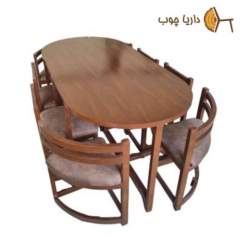 میز ناهار خوری کم جا 6 نفره بیضی فندقی